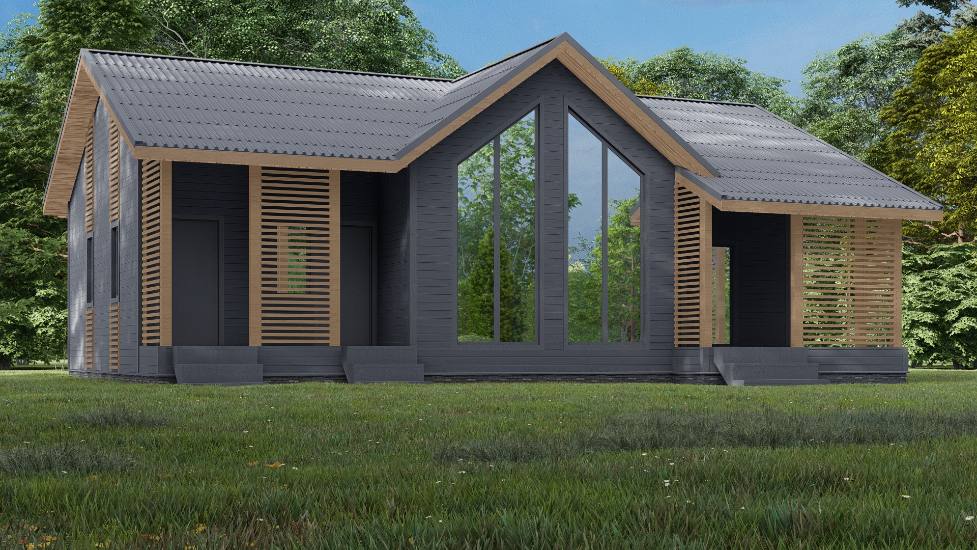 - Для согласования цветов фасадных, декоративных, пр. элементов каркасного дома и общего представления о внешнем виде вашего будущего каркасного дома в естественном окружении и при естественном цвете.