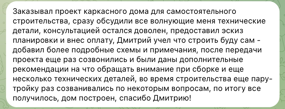 2. Нельзя точно реализовать ваше виденье внешнего вида, строительство каркасного дома без проекта предполагает неточности, непредсказуемый результат и зачастую не оправдывает ожиданий заказчиков!